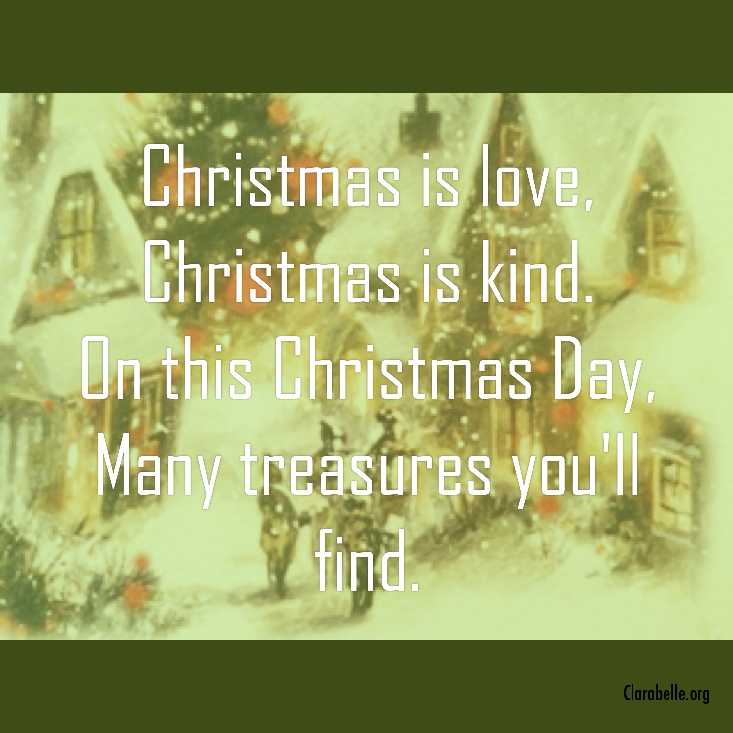 Christmas is Love December 23, 2015December 23, 2015 Clarabelle Christmas is Love… Clarabelle Online Magazine Christmas is love, Christmas is kind. On this Christmas Day, Many treasures you’ll find. View original postShare this: Click to share on X (Opens in new window) X Click to share on LinkedIn (Opens in new window) LinkedIn Click to share on Pinterest (Opens in new window) Pinterest Click to share on Tumblr (Opens in new window) Tumblr Click to share on Reddit (Opens in new window) Reddit Click to email a link to a friend (Opens in new window) Email Click to print (Opens in new window) Print Click to share on Pocket (Opens in new window) Pocket Like Loading... Related