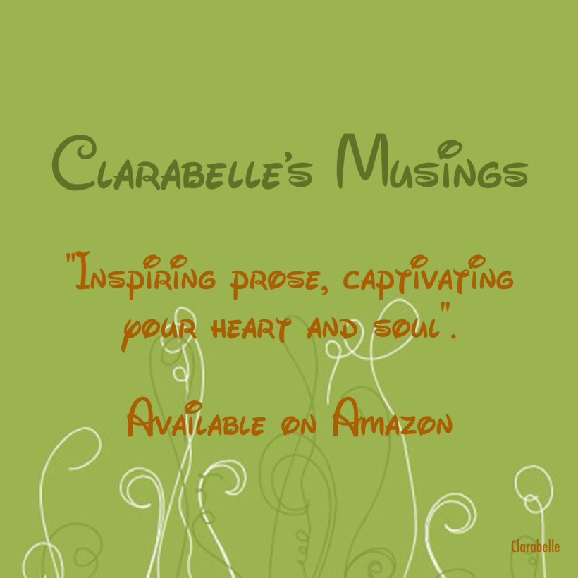I sit here today looking at my first Amazon paperback book,”Clarabelle’s Musings”, sitting on my home office desk and I am smiling with pure joy, excitement and adoration of what I see before me……for my heart is sitting on this table, my heart is painted on the pages of this book, making its way to you.