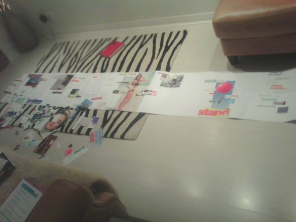 - When the time was right, I closed myself off from all distractions, played my music and started going through all my magazines and brochures and cut out words and images that made a real connection with me. This was a very inspiring part of the process, I could really feel myself getting excited about the significance of what I was coming across. This part took me about 6 hours.